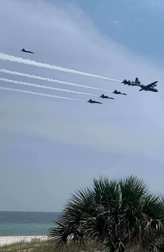 Below are various images captured by folks along the Alabama-Florida Gulf Coast at the Fat Albert and the Blue Angels made 3 passes along the coast...