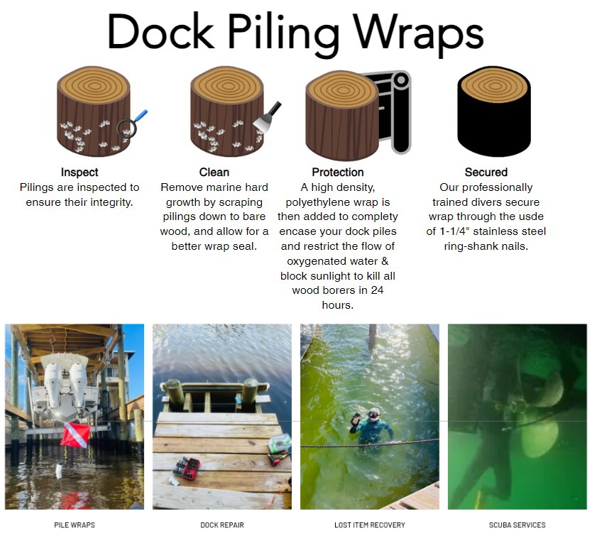 TankIt Scuba's offerings cater to both maintenance and recovery needs, ensuring the safety and longevity of docks and other marine installations. Below is a complete list of services offered and the benefits of those services.